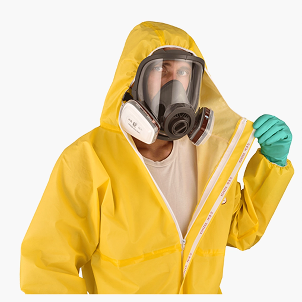 Face, wrists, waist, and ankles feature elastic closures to prevent contaminant ingress